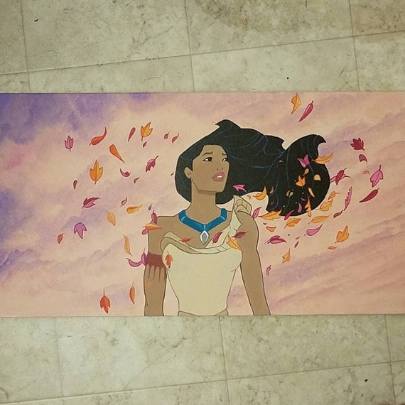 Disney Pocahontas Canvas Acrylic Painting 14in X 11in Disney
