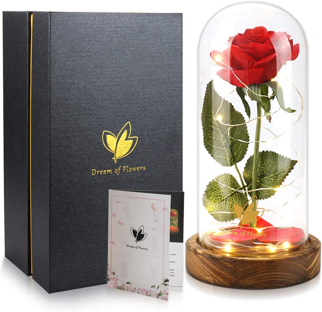 Beauty And The Beast Enchanted Rose In Glass Dome Falling Petals