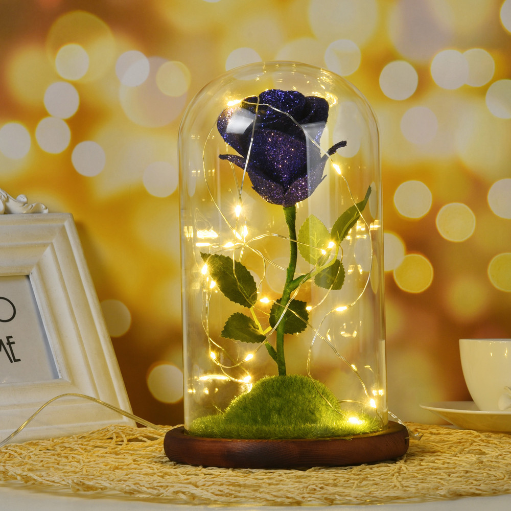 You can arrange the light strings how you want them. New beauty and the beast rose enchanted red silk rose kit and led fairy string lights fallen petals in glass dome on wooden base best gift for her. The most common beauty and the beast rose dome material is glass.