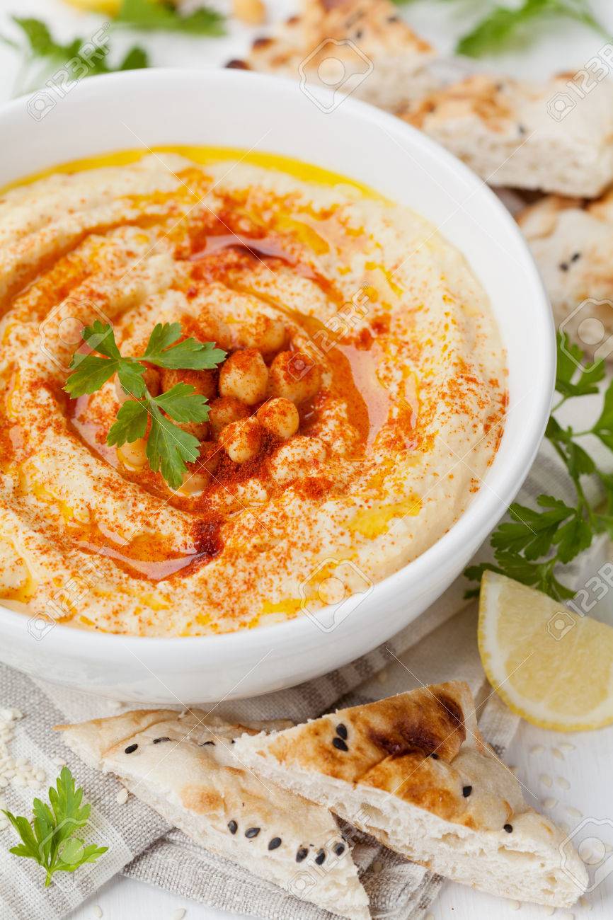 Hummus Or Houmous Appetizer Made Of Mashed Chickpeas With Tahini