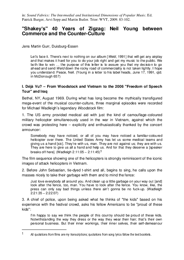 Pdf Shakeys 40 Years Of Zigzag Neil Young Between Commerce And